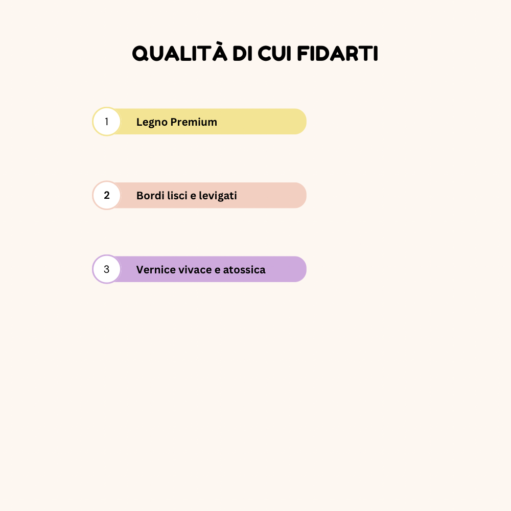 Sicuro e realizzato in legno di alta qualità con vernici sicure per bambini.
